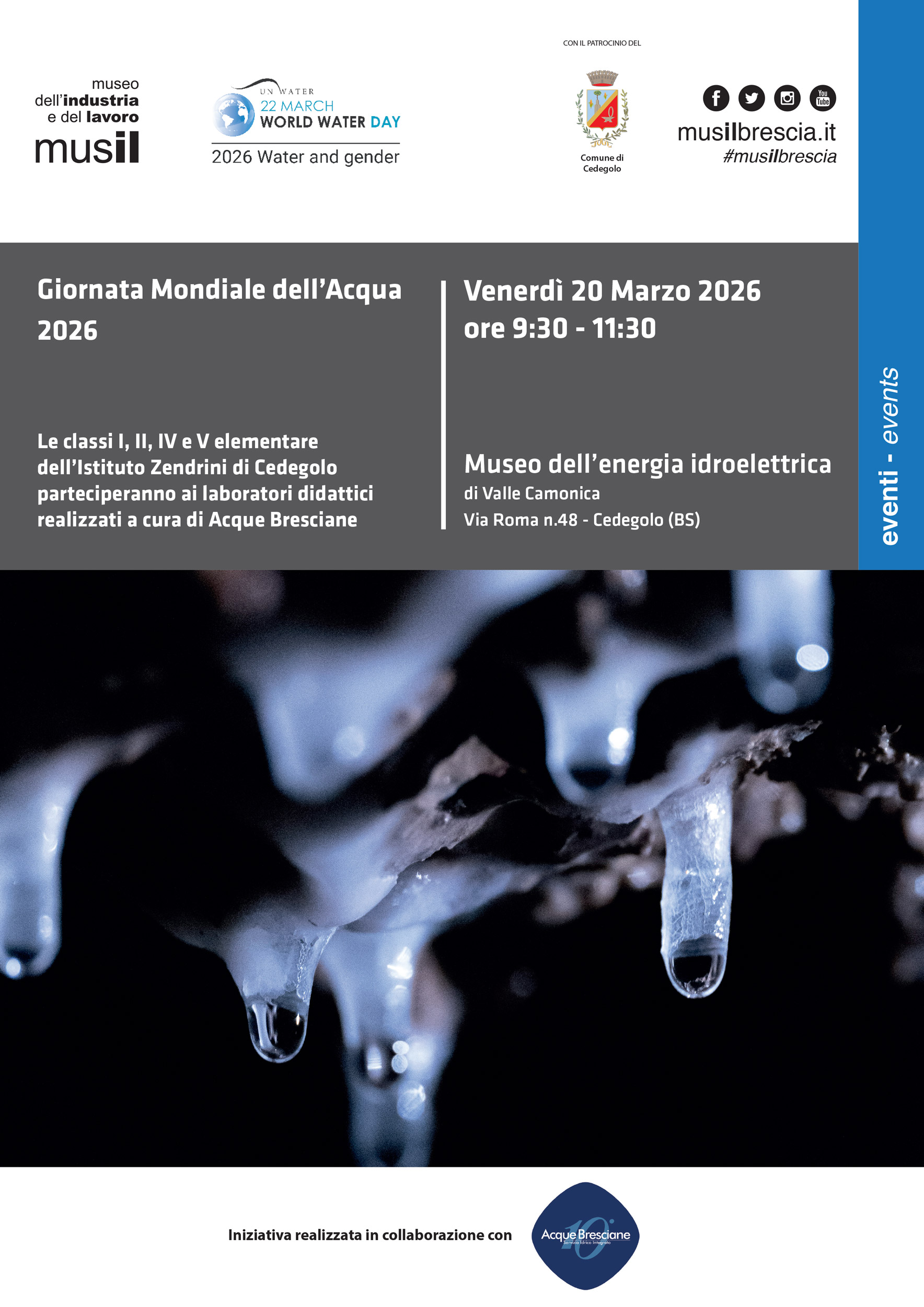 Im Rahmen der anlässlich des Weltwassertags (22. März) organisierten Initiativen findet am Freitag, den 20. März 2026, von 9:30 bis 11:30 Uhr im musil - Museum für Wasserkraft in Valle Camonica (Via Roma Nr. 48 in Cedegolo) eine Reihe von Bildungsworkshops statt, die von Acque Bresciane organisiert werden.