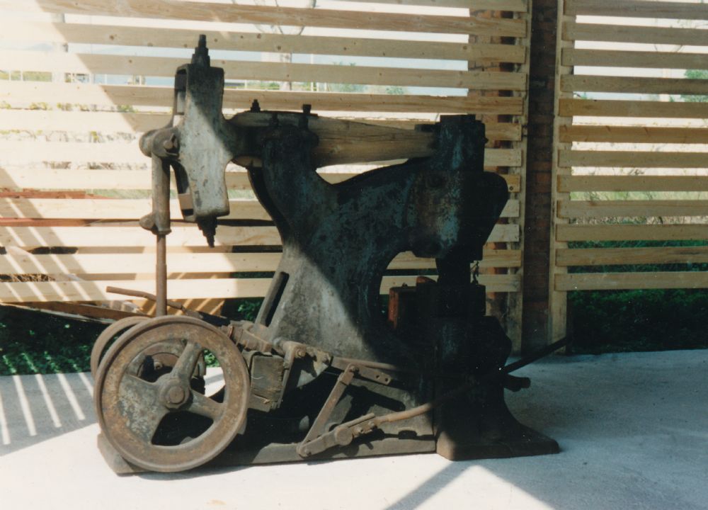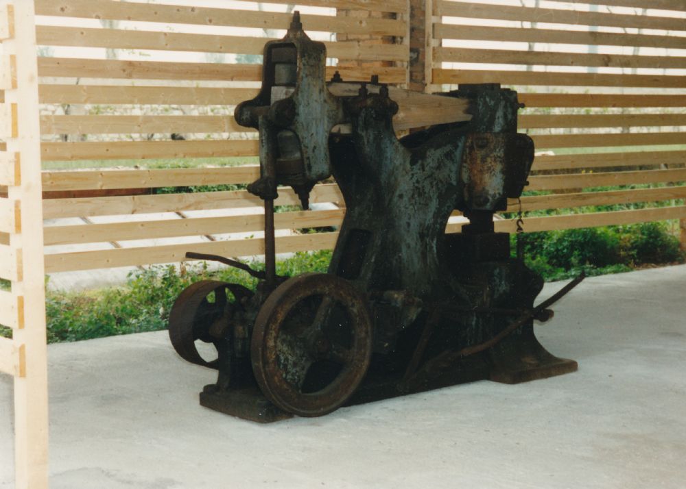 Museo dell'industria e del lavoro Maglio Inventario collezioni - Reperto n°13 Maglio a mazza battente con trasmissione a cinghia e comando a manubrio Riferimenti N° inventario: 13 Quantità: 1 Descrizione oggetto Oggetto: Maglio Didascalia: Maglio a mazza battente con trasmissione a cinghia e comando a manubrio Tipologia: Maglio Categoria (1): Macchine industriali Settore produttivo: Meccanico Settore di impiego: Officina meccanica Costruttore: Non specificato Nazione di produzione: Italia Città di produzione: Non specificata Stato di conservazione: Mediocre Cronologia Data di fabbricazione: 800 Specifica per la data di fabbricazione: circa Anno di inizio funzionamento: 800 Specifica per la data di fabbricazione: fine Anno di fine funzionamento: 1955 Specifica per la data di fabbricazione: circa Opificio di provenienza Opificio: Inox Botti Specifiche fisiche e tecniche Altezza (cm): 170 Larghezza (cm): 75 Profondità (cm): 150 Materiali: Legno Metallo Tipo di trazione / funzionamento: Idraulica Dettagli trazione: Movimento trasmesso a cinghia Prestazioni: Dieci colpi al minuto circa Reperto non funzionante Collocazione Collocazione generale: Musil di Rodengo Saiano Note e bibliografia Note scheda: Posizionato nella vetrina all'ingresso del musil di Rodengo Saiano Note tecniche: Macchina che ha le funzioni di martello meccanico agente per urto e che viene usata per fucinare o stampare a caldo pezzi metallici Proprietà del reperto Proprietà: Fondazione Luigi Micheletti Proprietà: Fondazione Luigi Micheletti Acquisizione Tipo di acquisizione: Dono Data di acquisizione: 01/07/1992 Validità della data di acquisizione: mm/aaaa Donante: Inox Botti Fotografie Maglio a mazza battente con trasmissione a cinghia e comando a manubrio Maglio a mazza battente con trasmissione a cinghia e comando a manubrio