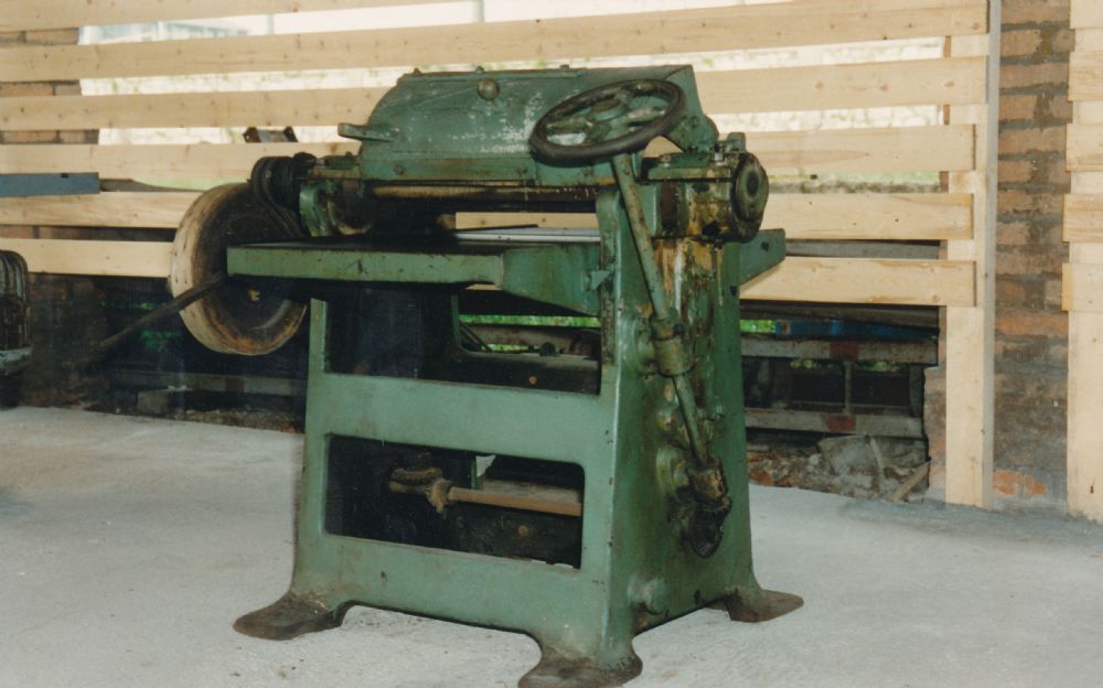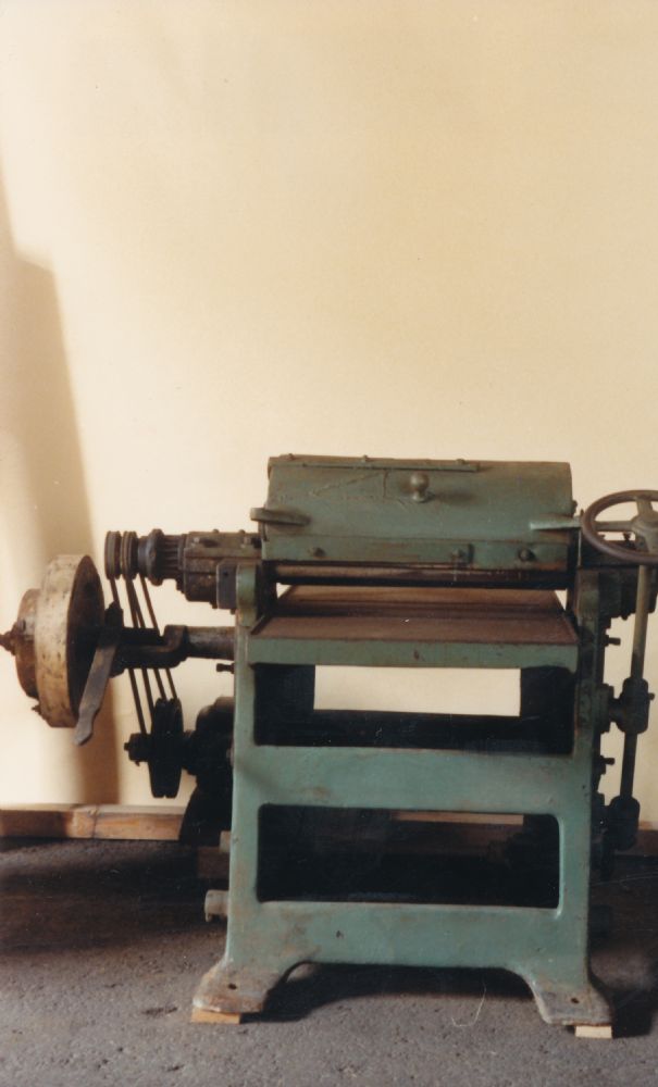 Museo dell'industria e del lavoro Spianatrice Inventario collezioni - Reperto n°16 Spianatrice a rullo per spianare o levigare superfici, con trasmissione a cinghia e regolazione a manubrio Riferimenti N° inventario: 16 Quantità: 1 Descrizione oggetto Oggetto: Spianatrice Didascalia: Spianatrice a rullo per spianare o levigare superfici, con trasmissione a cinghia e regolazione a manubrio Tipologia: Spianatrice Categoria (1): Macchine industriali Settore produttivo: Costruzione mezzi di trasporto Settore di impiego: Carrozzeria Costruttore: Non specificato Nazione di produzione: Italia Città di produzione: Non specificata Stato di conservazione: Buono Cronologia Data di fabbricazione: 0 Specifica per la data di fabbricazione: data esatta Specifica per la data di fabbricazione: data esatta Anno di fine funzionamento: 1985 Specifica per la data di fabbricazione: data esatta Opificio di provenienza Opificio: Carrozzeria Angelo Schieppati Specifiche fisiche e tecniche Altezza (cm): 110 Larghezza (cm): 150 Profondità (cm): 130 Materiali: Metallo Tipo di trazione / funzionamento: Non specificata Dettagli trazione: Motore elettrico ditta Ercole Marelli di Milano, asincro-no, 3,9 HP Reperto non funzionante Collocazione Collocazione generale: Via Rose, 12 c Note e bibliografia Proprietà del reperto Proprietà: Fondazione Luigi Micheletti Proprietà: Fondazione Luigi Micheletti Acquisizione Tipo di acquisizione: Dono Data di acquisizione: 28/05/1992 Validità della data di acquisizione: gg/mm/aaaa Donante: Schieppati carrozeria Fotografie Spianatrice a rullo per spianare o levigare superfici, con trasmissione a cinghia e regolazione a manubrio Spianatrice a rullo per spianare o levigare superfici, con trasmissione a cinghia e regolazione a manubrio
