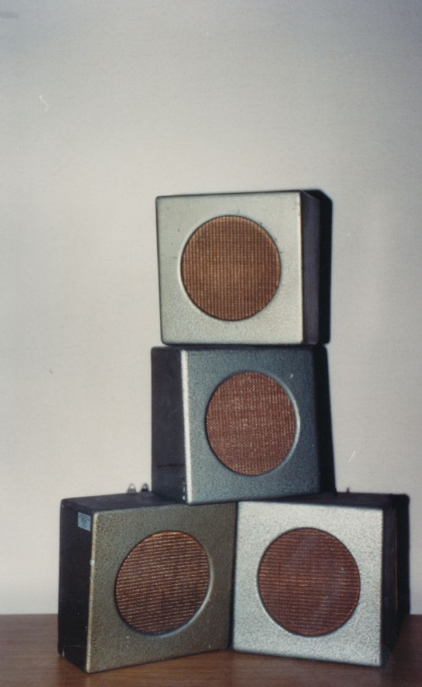 Museo dell'industria e del lavoro Altoparlanti Radioconi Inventario collezioni - Reperto n°87 Quattro altoparlanti da parete a basso voltaggio Riferimenti N° inventario: 87 Quantità: 4 Descrizione oggetto Oggetto: Altoparlanti Radioconi Didascalia: Quattro altoparlanti da parete a basso voltaggio Tipologia: Altoparlanti Categoria (1): Tecniche del suono Categoria (2): Fotocinematografia Settore produttivo: Cinematografico e televisivo Settore di impiego: Cinema e televisione Costruttore: Radioconi Nazione di produzione: Italia Città di produzione: Milano Marchi, targhe e iscrizioni: Radioconi Milano Stato di conservazione: Buono Cronologia Data di fabbricazione: 1950 Specifica per la data di fabbricazione: circa Anno di inizio funzionamento: 1950 Specifica per la data di fabbricazione: circa Specifica per la data di fabbricazione: data esatta Opificio di provenienza Opificio: Cinestabilimento fratelli Donato Specifiche fisiche e tecniche Altezza (cm): 24 Larghezza (cm): 24 Profondità (cm): 14 Materiali: Ghisa Metallo Tessuto Tipo di trazione / funzionamento: Non specificata Dettagli trazione: Elettrica Reperto non funzionante Collocazione Collocazione generale: Musil di Rodengo Saiano Collocazione di provenienza: Via don Giacomo Vender, 45 Note e bibliografia Note scheda: Inventario Donato 56 Note tecniche: Apparecchio che amplifica i suoni, trasformando l'energia di correnti elettriche modulate a frequenza acustica in energia meccanica di vibrazione Proprietà del reperto Proprietà: Fondazione Luigi Micheletti Proprietà: Fondazione Luigi Micheletti Acquisizione Tipo di acquisizione: Dono Data di acquisizione: 13/02/1992 Validità della data di acquisizione: gg/mm/aaaa Donante: Donato film Fotografie Quattro altoparlanti da parete a basso voltaggio