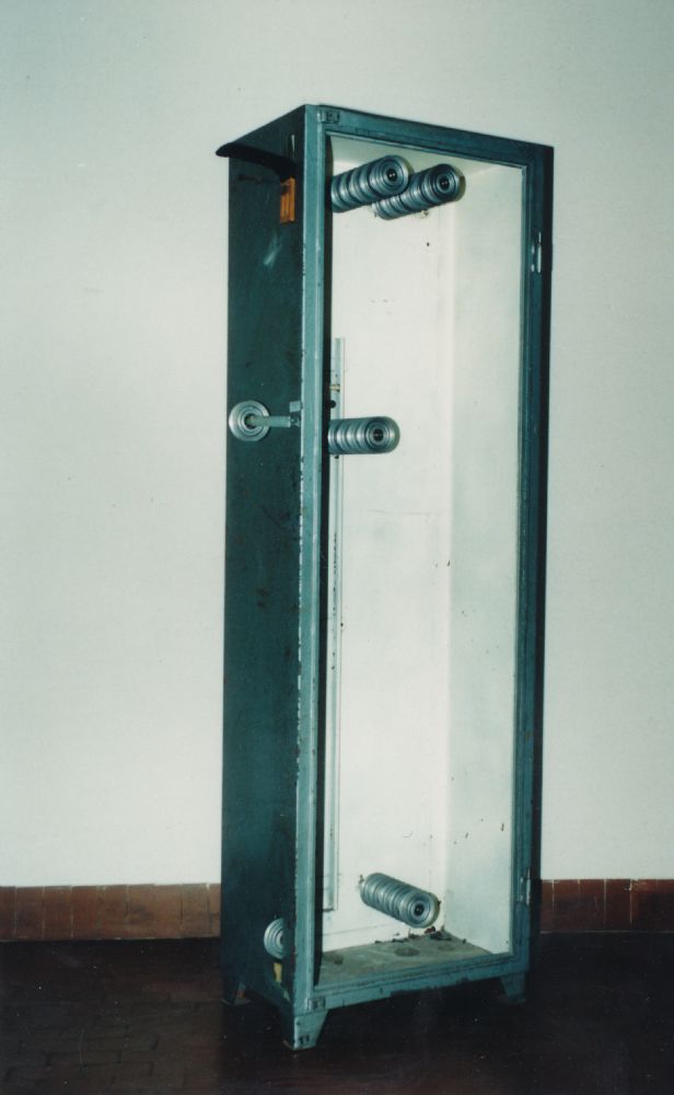 Museo dell'industria e del lavoro Essiccatore pellicola 35mm Inventario collezioni - Reperto n°103 Armadio di essiccazione ad anello in serie per pellicola 35mm, con due scorri-pellicola esterni e altezza interna degli anelli regolabile. Riferimenti N° inventario: 103 Quantità: 1 Descrizione oggetto Oggetto: Essiccatore pellicola 35mm Didascalia: Armadio di essiccazione ad anello in serie per pellicola 35mm, con due scorri-pellicola esterni e altezza interna degli anelli regolabile. Tipologia: Essiccatore Categoria (1): Fotografia, cinema e video Settore produttivo: Cinematografico e televisivo Settore di impiego: Cinema e televisione Costruttore: Non specificato Nazione di produzione: Non specificata Città di produzione: Non specificata Stato di conservazione: Pessimo Cronologia Data di fabbricazione: 1960 Specifica per la data di fabbricazione: circa Anno di inizio funzionamento: 1960 Specifica per la data di fabbricazione: circa Specifica per la data di fabbricazione: data esatta Opificio di provenienza Opificio: Cinestabilimento fratelli Donato Specifiche fisiche e tecniche Altezza (cm): 208 Larghezza (cm): 40 Profondità (cm): 80 Materiali: Metallo Vetro Tipo di trazione / funzionamento: Non specificata Reperto non funzionante Collocazione Collocazione generale: Musil di Rodengo Saiano Collocazione di provenienza: Via don Giacomo Vender, 45 Note e bibliografia Note scheda: Inventario Donato 73 Proprietà del reperto Proprietà: Fondazione Luigi Micheletti Proprietà: Fondazione Luigi Micheletti Acquisizione Tipo di acquisizione: Dono Data di acquisizione: 13/02/1992 Validità della data di acquisizione: gg/mm/aaaa Donante: Donato film Fotografie Armadio di essiccazione ad anello in serie per pellicola 35mm, con due scorri-pellicola esterni e altezza interna degli anelli regolabile.