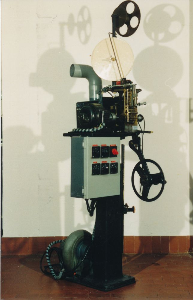 Museo dell'industria e del lavoro Stampatrice cinematografica 35mm rotativa Inventario collezioni - Reperto n°111 Stampatrice rotativa per pellicola 35mm con accoppiamento SIMMS 64, banco comandi aggiunto successivamente e regolo altezza dei portabobine. Riferimenti N° inventario: 111 Quantità: 1 Descrizione oggetto Oggetto: Stampatrice cinematografica 35mm rotativa Didascalia: Stampatrice rotativa per pellicola 35mm con accoppiamento SIMMS 64, banco comandi aggiunto successivamente e regolo altezza dei portabobine. Tipologia: Stampatrice cinematografica Categoria (1): Fotografia, cinema e video Settore produttivo: Cinematografico e televisivo Settore di impiego: Cinema e televisione Costruttore: Giuseppe Donato Nazione di produzione: Italia Città di produzione: Milano Marchi, targhe e iscrizioni: Accoppiamento SIMMS tipo 64. (Targhette motori) Stato di conservazione: Buono Cronologia Data di fabbricazione: 1935 Specifica per la data di fabbricazione: circa Anno di inizio funzionamento: 1935 Specifica per la data di fabbricazione: circa Specifica per la data di fabbricazione: data esatta Opificio di provenienza Opificio: Cinestabilimento fratelli Donato Specifiche fisiche e tecniche Altezza (cm): 190 Larghezza (cm): 90 Profondità (cm): 80 Materiali: [Bachelite], Metallo, Plastica, Tessuto Tipo di trazione / funzionamento: Elettrica Dettagli trazione: Motore elettrico E. Marelli & C. Milano, asincrono, trifase, 220 V, 0,25 Hp, corrente continua. Motore elettrico E. Marelli & C. spa Milano, asincrono, trifase, 220 e 380 V, 250 Hp, corrente continua Reperto non funzionante Collocazione Collocazione generale: Via don Giacomo Vender, 45 Note e bibliografia Note scheda: Inventario Donato 83. Cfr. scheda n. 125 Note tecniche: Realizzazione artigianale con assemblaggio di pezzi diversi Note storiche: Realizzazione artigianale con assemblaggio di pezzi diversi Proprietà del reperto Proprietà: Fondazione Luigi Micheletti Proprietà: Fondazione Luigi Micheletti Acquisizione Tipo di acquisizione: Dono Data di acquisizione: 13/02/1992 Validità della data di acquisizione: gg/mm/aaaa Donante: Donato film Fotografie Stampatrice rotativa per pellicola 35mm con accoppiamento SIMMS 64, banco comandi aggiunto successivamente e regolo altezza dei portabobine.