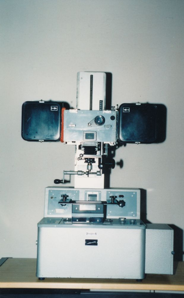 Museo dell'industria e del lavoro Macchina per ripresa diapositive Hombrich Inventario collezioni - Reperto n°113 Macchina per ripresa diapositive Hombrich tipo I P 35, con 2 portabobine, obiettivo a soffietto, lenti estraibili, mirino di precisione, stativo regolabile a manovella su asta filettata, banco di illuminazione e quadro di comando Riferimenti N° inventario: 113 Quantità: 1 Descrizione oggetto Oggetto: Macchina per ripresa diapositive Hombrich Didascalia: Macchina per ripresa diapositive Hombrich tipo I P 35, con 2 portabobine, obiettivo a soffietto, lenti estraibili, mirino di precisione, stativo regolabile a manovella su asta filettata, banco di illuminazione e quadro di comando Settore produttivo: Cinematografico e televisivo Settore di impiego: Cinema e televisione Costruttore: Hombrich Nazione di produzione: Germania Città di produzione: Non specificata Marchi, targhe e iscrizioni: (Due targhette costruttore) Stato di conservazione: Buono Cronologia Data di fabbricazione: 1960 Specifica per la data di fabbricazione: circa Anno di inizio funzionamento: 1960 Specifica per la data di fabbricazione: circa Specifica per la data di fabbricazione: data esatta Opificio di provenienza Opificio: Cinestabilimento fratelli Donato Specifiche fisiche e tecniche Altezza (cm): 110 Larghezza (cm): 46 Profondità (cm): 76 Materiali: Metallo, Plastica, Vetro Tipo di trazione / funzionamento: Non specificata Dettagli trazione: Elettrica e manuale Reperto non funzionante Collocazione Collocazione generale: Via don Giacomo Vender, 45 Note e bibliografia Note scheda: Inventario Donato 85 Proprietà del reperto Proprietà: Fondazione Luigi Micheletti Proprietà: Fondazione Luigi Micheletti Acquisizione Tipo di acquisizione: Dono Data di acquisizione: 13/02/1992 Validità della data di acquisizione: gg/mm/aaaa Donante: Donato film Fotografie Macchina per ripresa diapositive Hombrich tipo I P 35, con 2 portabobine, obiettivo a soffietto, lenti estraibili, mirino di precisione, stativo regolabile a manovella su asta filettata, banco di illuminazione e quadro di comando