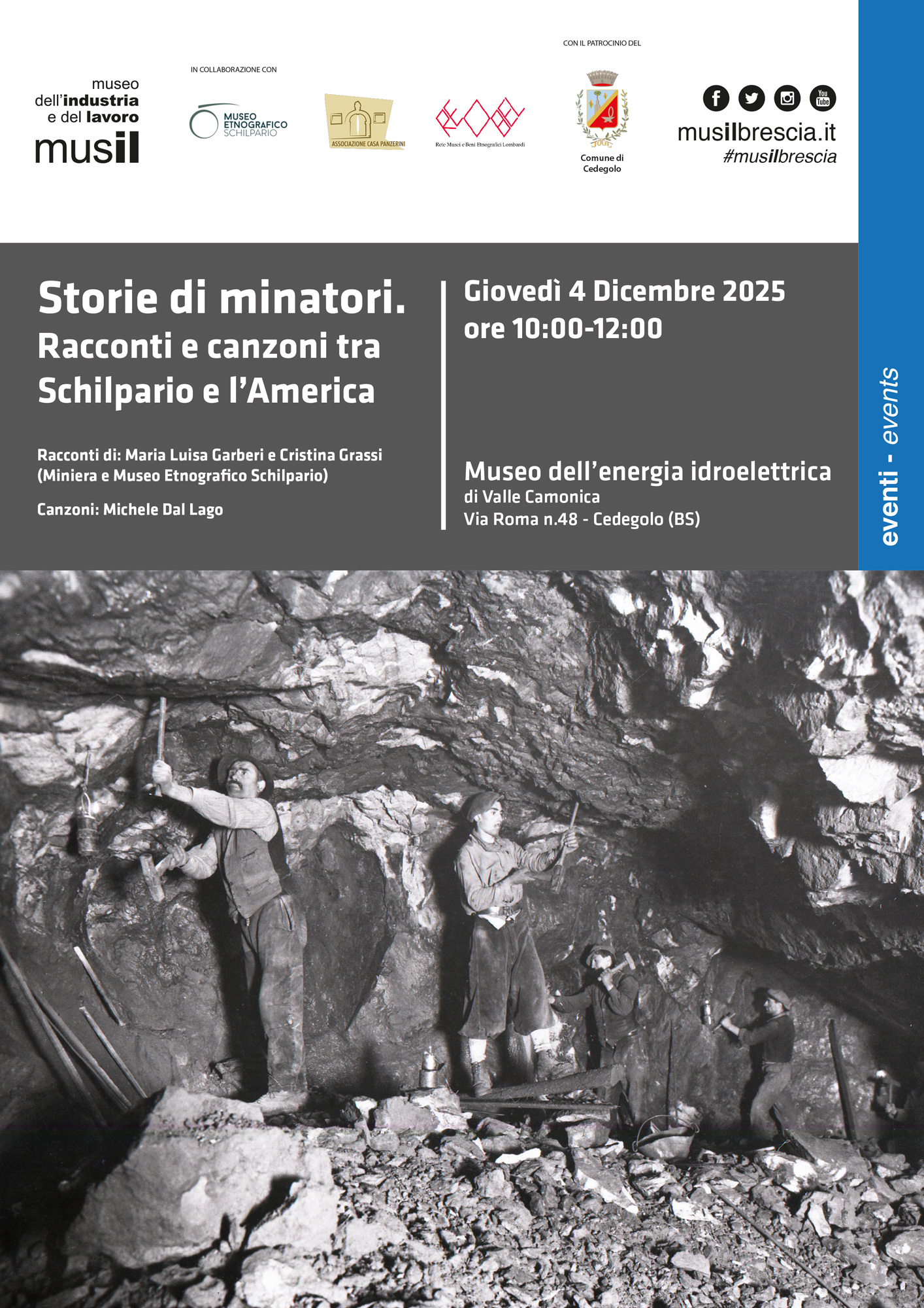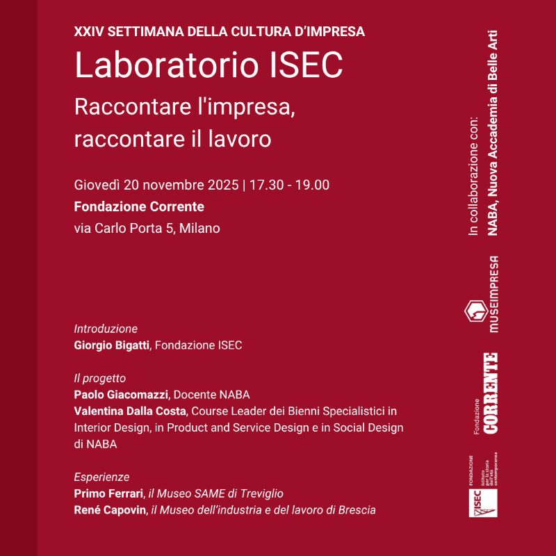 Sabato 4 Ottobre 2025 dalle 17:00 presso il Museo del ferro "Lodovico Giordani" (in via del Manestro n.107 a Brescia) si terrà "Storie di lavoro". Globale e domestico, ieri e oggi: due facce del lavoro contemporaneo attraverso il cinema documentario del Concorso Nazionale Roberto Gavioli, dal 2008 premio e archivio promosso dal MUSIL.
